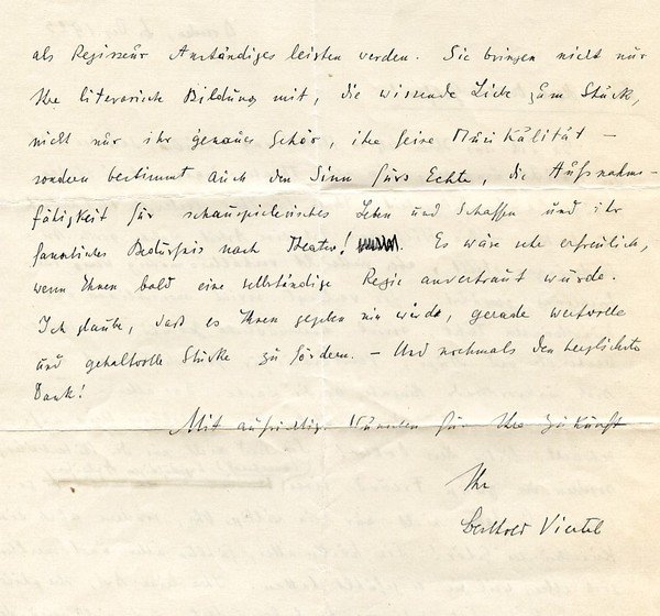 Large 4to. 1½ pp. To the writer Alfred Golfar. - Strong traces of folding, otherwise well preserved.