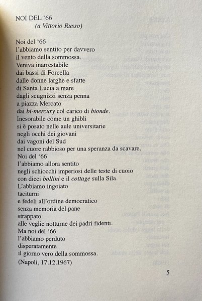 Soggetti: Poesia italiana contemporanea, Raccolte poetiche, Antologie, Poesia civile, Poesie, Sperlonga, Libri Vintage Fuori catalogo, Anni Sessanta, Sessantotto, Lille, Lago d'iseo, Amore, Afrodite nero, Candia, Terre canavesane, Banlieues, Francia, Francese, Critica, Recensioni, Tommaso Pisanti, Mariella Albrizio Russo, Marcello Carlino, Liri silente, Scauri, Formia, Gaeta, Vittorio Russo, Intellettuali, Ribellione, Paesaggio, Napoli, Santa Lucia, Forcella, Scugnizzi, Mercato, Sommossa, Sinistra, Libri rari, Libri autografati, Poetica, Contemporary Italian poetry, Poetic collections, Anthologies, Civil poetry, Poems, Out of print books, Sixties, Sixty-eight, Love, Black Aphrodite, Canavese lands, France, French, Criticism, Reviews, Intellectuals, Rebellion, Landscape, Naples, Market, Riot, Left, Rare Books, Autographed Books, Poetics