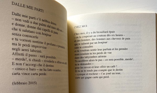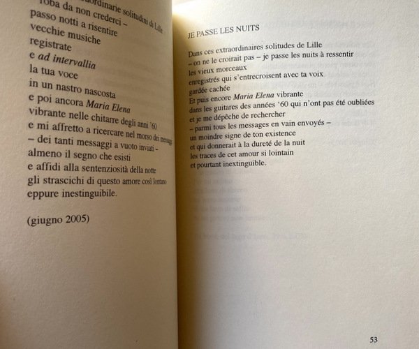 Riporto alcuni versi da Per le donne di Lille: Mi sono portato nel sole di giugno/rialzando della mia vita l'inutile sipario/sulle vie dintorno/ Ma anche versi più introspettivi e solitari quasi raminghi del sentire. ?Nei giorni estivi: La solitudine di Lille è nelle finestre/dal volto di donne senza tempo/quando piove/ nei giorni estivi./ Se ne stanno immobili/ nell'antica bellezza/spenta tra le volute/ di una macerata Gauloises./gli occhi con lenti giallognole/sperduti o in bilico/ nella terrazza di un vicino. Datata 18 settembre 2005 quasi che il periodo cronologico fosse una ricerca giustificativa, settembre è il mese per eccellenza che volge al ritorno alle sudate carte, alla routine, dopo che il sole ci ha rosolato l'anima e intorpidito il sentire.