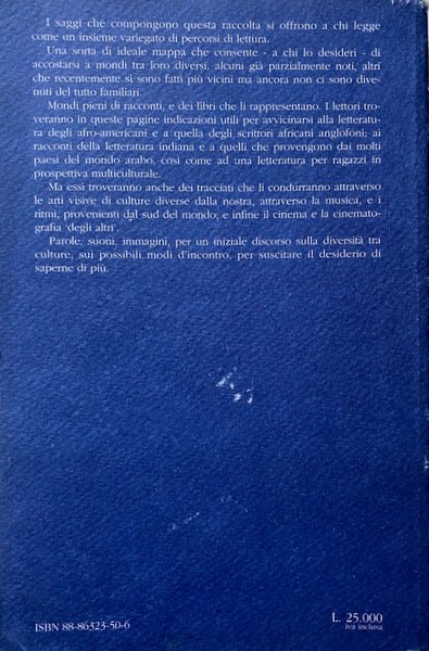 I saggi che compongono questa raccolta si offrono a chi legge come un insieme variegato di percorsi di lettura. Una sorta di ideale mappa che consente - a chi lo desidera - di accostarsi a mondi tra loro diversi, alcuni già parzialmente noti, altri che recentemente si sono fatti più vicini, ma ancora non ci sono diventati del tutto familiari. Mondi pieni di racconti e dei libri che li rappresentano. i lettori troveranno in queste pagine indicazioni utili per avvicinarsi alla letteratura degli afro-americani e a quella degli scrittori africani anglofoni: ai racconti della letteratura indiana e a quelli che provengono dai molti paesi del mondo arabo, così come ad una letteratura per ragazzi in una prospettiva multiculturale. Ma essi troveranno anche dei tracciati che li condurranno attraverso le arti visive di culture diverse dalla nostra, attraverso la musica, e i ritmi, provenienti dal sud del mondo, e infine il cinema e la cinematografia "degli altri". Parole, suoni, immagini per un iniziale discorso sulla diversità fra culture, sui possibili modi d'incontro, per suscitare il desiderio di saperne di più.