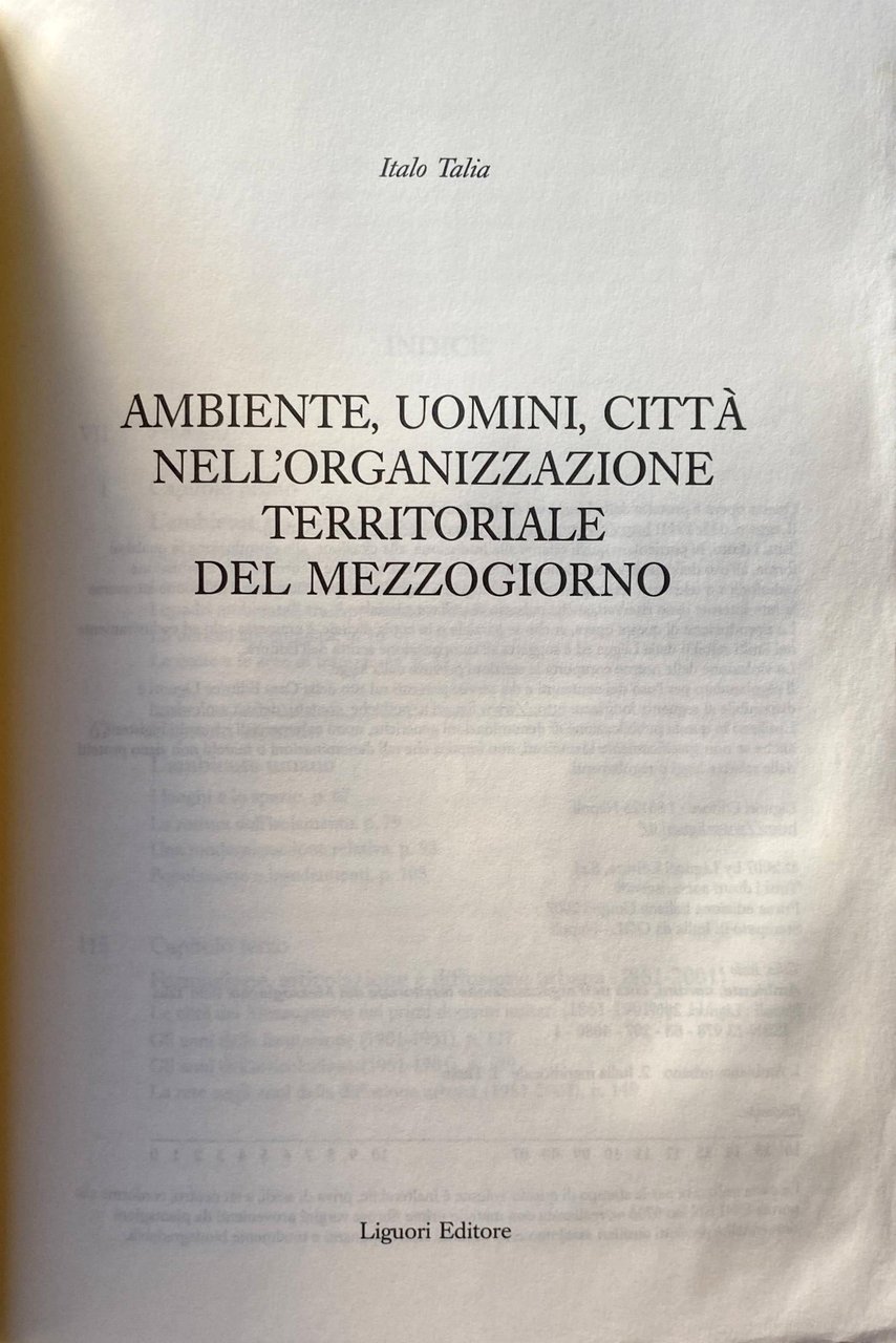 Soggetti: Scienze sociali Geografia urbana regionale Ambiente urbano Italia meridionale Urbanizzazione Urbanesimo Urbanistica Demografia Libri universitari Saggi fuori catalogo Ecologia Pianificazione Città Organizzazione Architettura Abitanti Abruzzi Adriatica Agraria Paesaggio Agricolo Aree metropolitane Attività Bacini Bari Benevento Bonifica Brindisi Capoluoghi Capua Caserta Catania Catanzaro Centri Cilento Centrale Condizioni Cultura Civiltà Contadina Contesto Conurbazione Cosenza Crescita Isola Demografico Direttrice Costiera Economica Fenomeni Formazione Funzionale Industriale Insediamenti Ionico Lecce locali Lucio Gambi Luoghi Ledia Metropolitana Napoli Mezzogiorno Continentale Modernizzazione Montagna Murge Ofantina Paestum Palermo Pescara Piana Sibari Pianura Policentrismo Politica Popolazione Produttivo Pugliese Quadri ambientali Questione meridionale Regioni Rete Salerno Servizi Sistema sociale Spazio Squilibrio Storia Storica Struttura Sviluppo Taranto Terremoto Territorio Terziario Tirreno Valle Appennino Geologia Coste Dorsali Mari Meridionalismo Spazio Rossi Doria Afan de Rivera Piero Bevilacqua Giustino Fortunato Galasso Compagna Augusto Placanica Ignazio Silone Parchi regionali Tutela ambientale Abruzzo Marche Campania Basilicata Puglia Sicilia Salento Lucania Molise Terremoti Viaggiatori Studi culturali Paesaggio Catastrofi Calamità Morfologia Ofanto Sele Tanagro Irpinia Avezzano Fucino Sottosviluppo Economia Agricoltura Basento Corrado Alvaro Flysch Appennini Ferdinando Galiani Idrografia Sylos Labini Industria Commercio Trasporti Svimez Gibelli Camagni Sostenibilità Dal Piaz Musatti Matera Ferrovia Zanardelli Tavoliere Ernesto Mazzetti Melfi Sala Consilina Interscambio Infrastrutture Integrazione Interporti Social sciences Regional urban geography Urban environment Southern Italy Urbanization Urbanism Town planning Demography University books Out of print essays Ecology Territorial planning City Organization Architecture Inhabitants Agrarian Agricultural landscape Metropolitan areas Activities Basins Land reclamation Capital cities Centers Conditions Culture Rural civilization Context Conurbation Growth Island Demographic Directorate Coastal Economic Phenomena Education Functional Industrial Local Settlements Places Mediterranean Metropolitan Naples Continental Modernization Mountain Flat Plain Polycentrism Politics Population Productive Environmental frameworks Southern issue Regions Network Services Social system Space Imbalance Historical History Structure Development Earthquake Tertiary Territory Tyrrhenian Valley Apennines Geology Dorsal Coasts Southern Mediterranean Seas Space Reclamation Regional parks Environmental protection Sicily Travelers Cultural studies Landscape Catastrophes Calamities Morphology Underdevelopment Economy Agriculture Apennines Hydrography Industry Commerce Transport Sustainability Railway Interchange Infrastructure Integration Interports