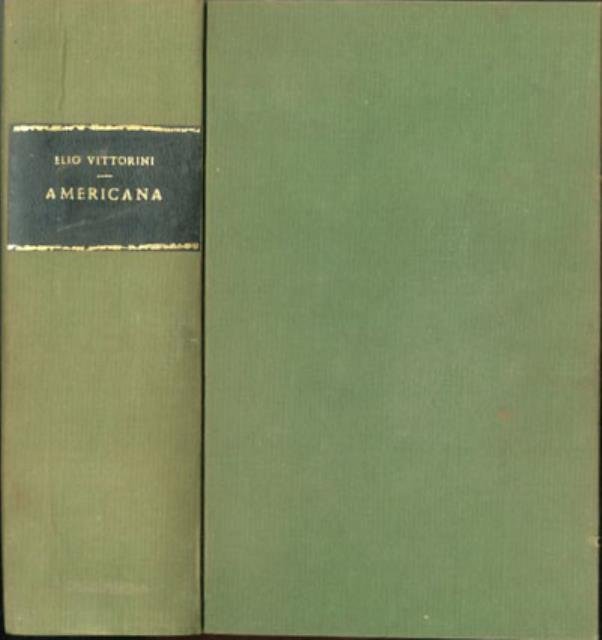 XXIII, 1041 p., [112] p. di tav. : ill. ; 21 x 13 cm. Pantheon. "Americana" è una scelta antologica di quella narrativa allora quasi del tutto sconosciuta in Italia. Erano gli anni in cui la letteratura statunitense veniva scoperta e proponeva agli scrittori più giovani un nuovo modello. "Americana" ne fu la più audace e documentata testimonianza. Nacque un mito, una leggenda, un classico che raccoglieva i brani dei più famosi e significativi autori americani, da Poe a Hawthorne, London, Steinbeck e altri ancora (In questa antologia comparve per la prima volta nella scena culturale e letteraria italiana John Fante), tutti tradotti da alcuni fra i maggiori scrittori italiani. La lingua è semplice e sciolta, duttile nel misurarsi con lo slang americano, con la prosa scarna di Hemingway, con le parole cariche di significati simbolici di Melville. Elio Vittorini ricevette da Bompiani nel 1939 un incarico editoriale e trasferitosi a Milano, dove diresse la collana "La Corona", progettò questa antologia di scrittori statunitensi che, a causa della censura fascista, venne pubblicata solamente alla fine del 1942 e con tutte le note dell'autore soppresse (l'edizione integrale venne pubblicata solamente nel 1968) e con una introduzione di Emilio Cecchi. Questo esemplare è stato stampato il 25 gennaio 1943. Legatura editoriale, coperta in cartone rigido telato di colore verde, titolo impresso in oro al dorso su talloncino nero, muto il piatto. Qualche segno del tempo ai risvolti della cop., al taglio e alle pagine interne (ingiallimento e fioriture), per il resto esemplare in buono stato. Manca la sovraccoperta originale. All'interno 112 pagine non numerate illustrate in b/n con immagini e didascalie, scelte dallo stesso Vittorini. Codice libreria 5571.