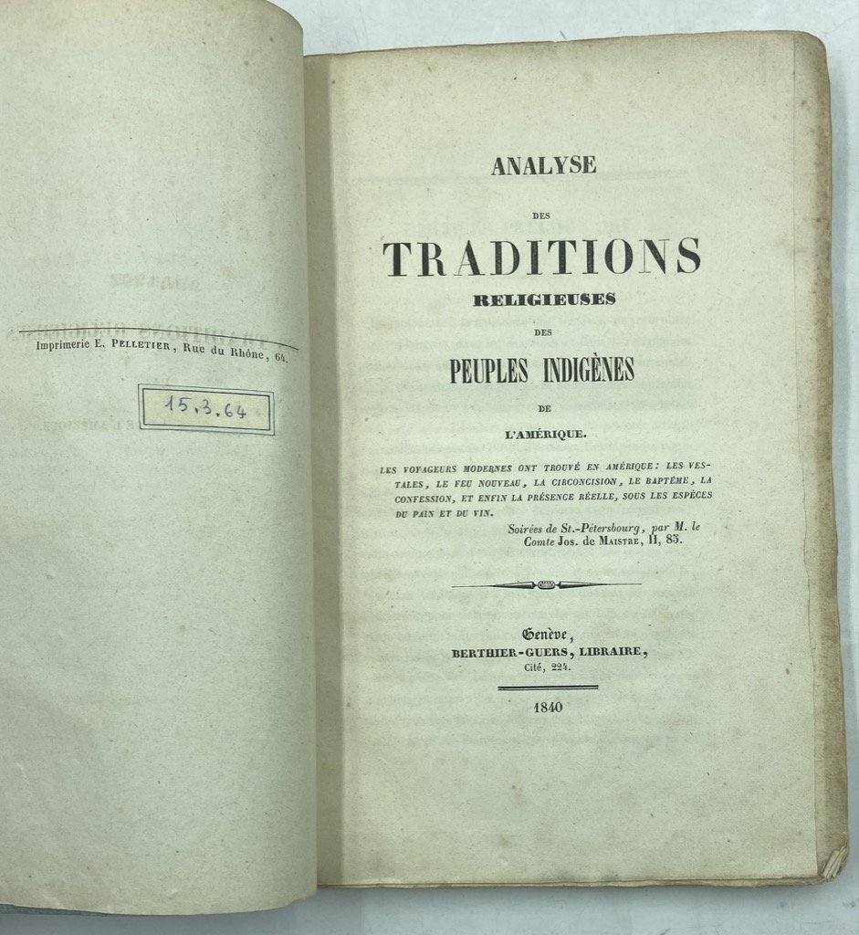 Analyse des traditions religieuses des peuples indigènes de l'Amérique. | Libros antiguos y modernos | Kastner, Adolphe