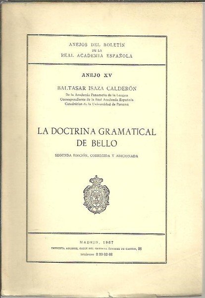 ANEJOS DEL BOLETIN DE LA REAL ACADEMIA ESPAÑOLA. ANEJO XV. LA DOCTRINA GRAMATICAL DE BELLO.