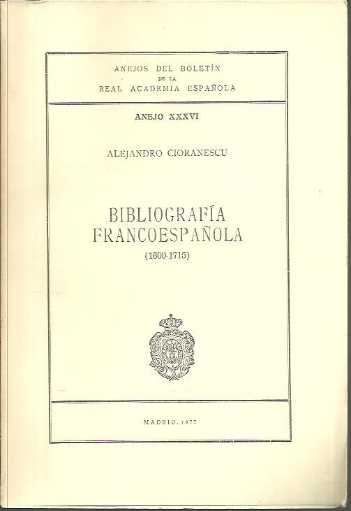 ANEJOS DEL BOLETIN DE LA REAL ACADEMIA ESPAÑOLA. ANEJO XXXVI. BIBLIOGRAFIA FRANCOESPAÑOLA (1600-1715).