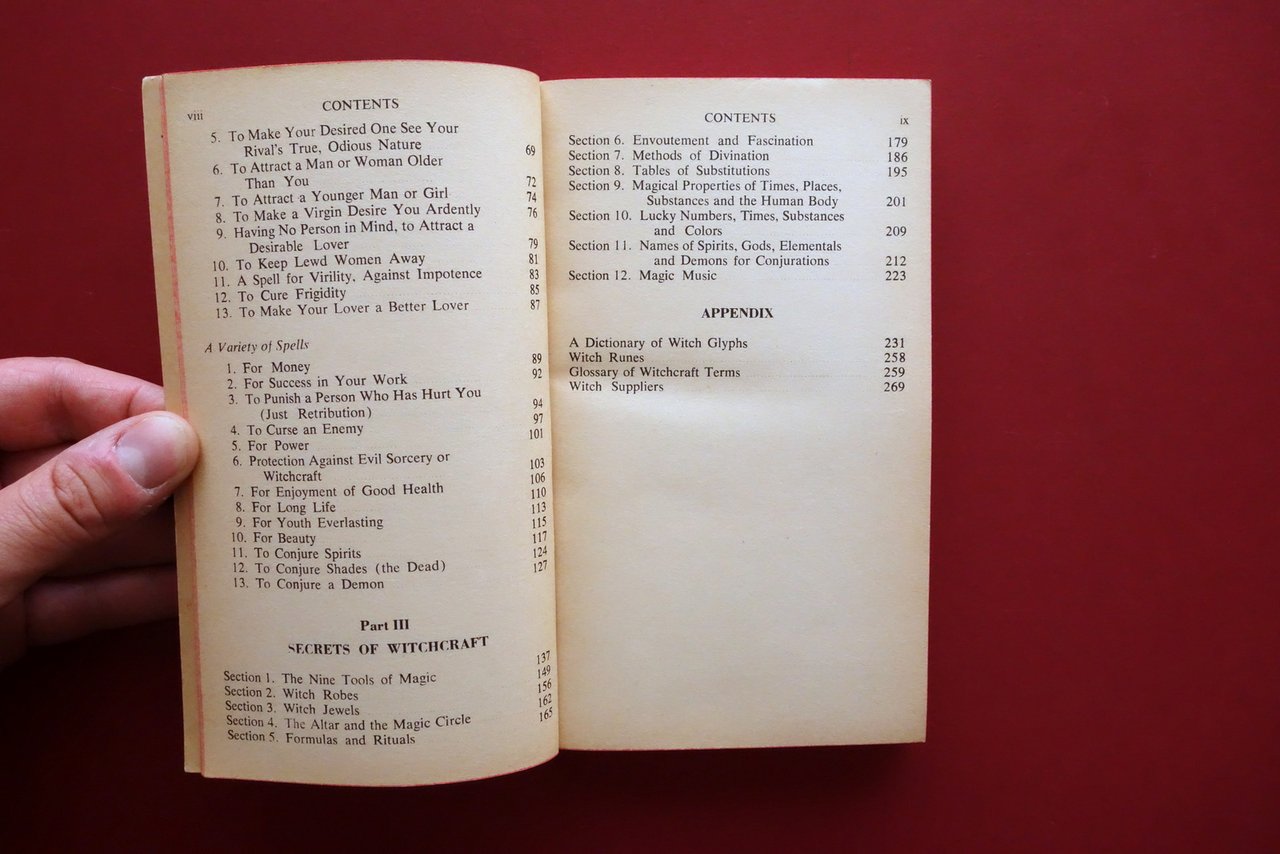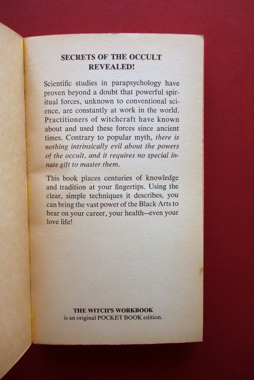 Ann Grammary, The Witch's Workbook Pocket Books, New York 1973; cm 18x10,5; pp. XVI-270 con alcune ill. in b/n nel t.; brossura ed. ill. a colori, tagli rossi. Edizione in lingua inglese. Condizioni di conservazione Buone condizioni con tracce d'uso, brossura leggermente sgualcita ai margini e agli angoli, al dorso un leggero segno di utilizzo. Interni buoni con minimo principio di ingiallimento delle pagine dovuto al tipo di carta. Non comune prima edizione del 1972. Edizione in lingua inglese. SETT45.L25822 N