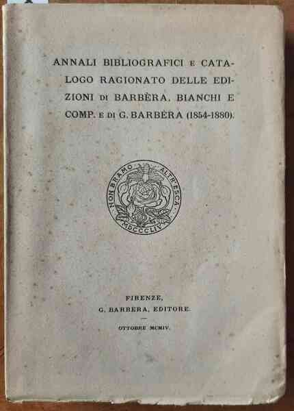 Annali bibliografici e catalogo ragionato delle edizioni di Barbèra, Bianchi e comp. e di G. Barbèra con elenco di libri, opuscoli e periodici stampati per commissione 1854-1880