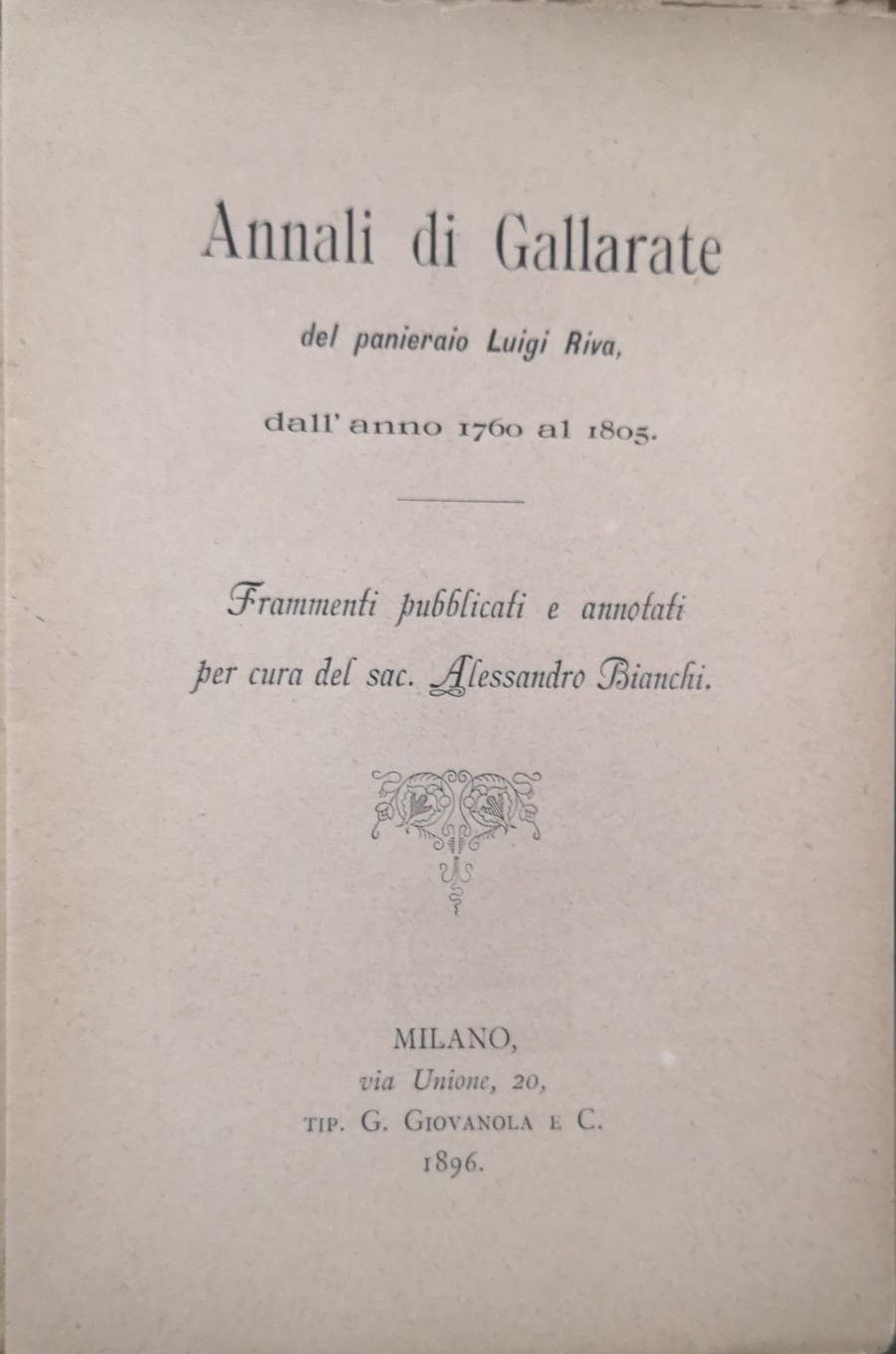ANNALI DI GALLARATE. - Frammenti pubblicati e annotati per cura del sac. Alessandro Bianchi.