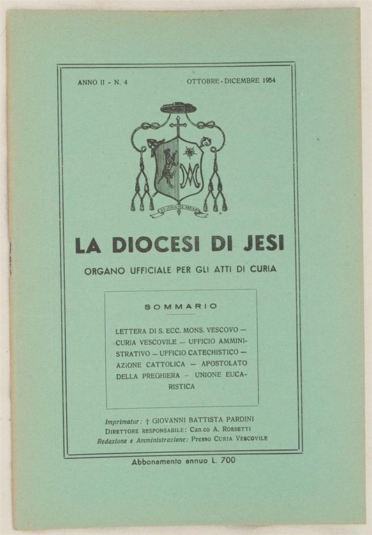 ANNO II - N. 4 OTTOBRE-DICEMBRE 1954 LA DIOCESI DI JESI ORGANO UFFICIALE PER GLI ATTI DELLA CURIA
