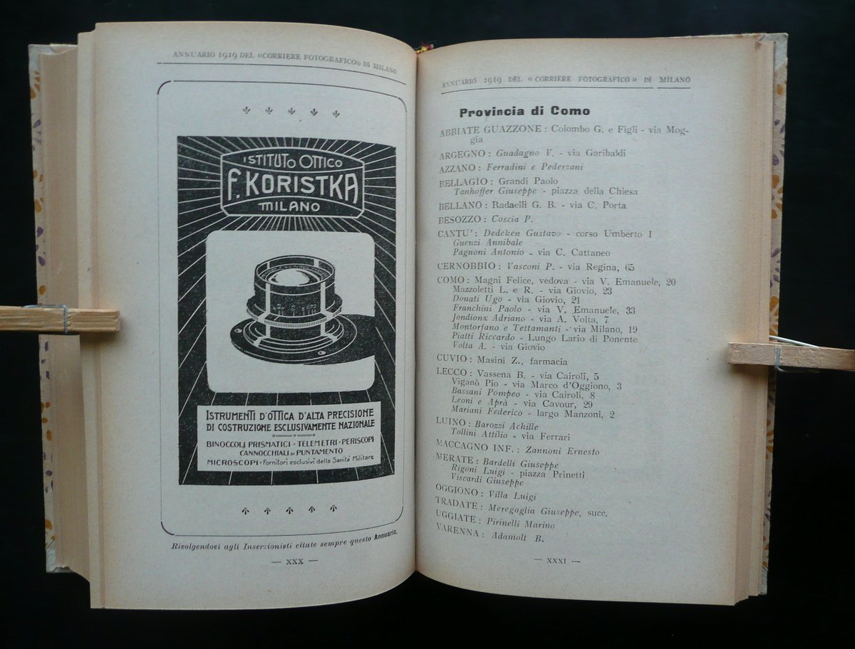 Annuario 1919 della Fotografia M. Cacciatori Dell'Aquila Milano Elenco Fotografi
