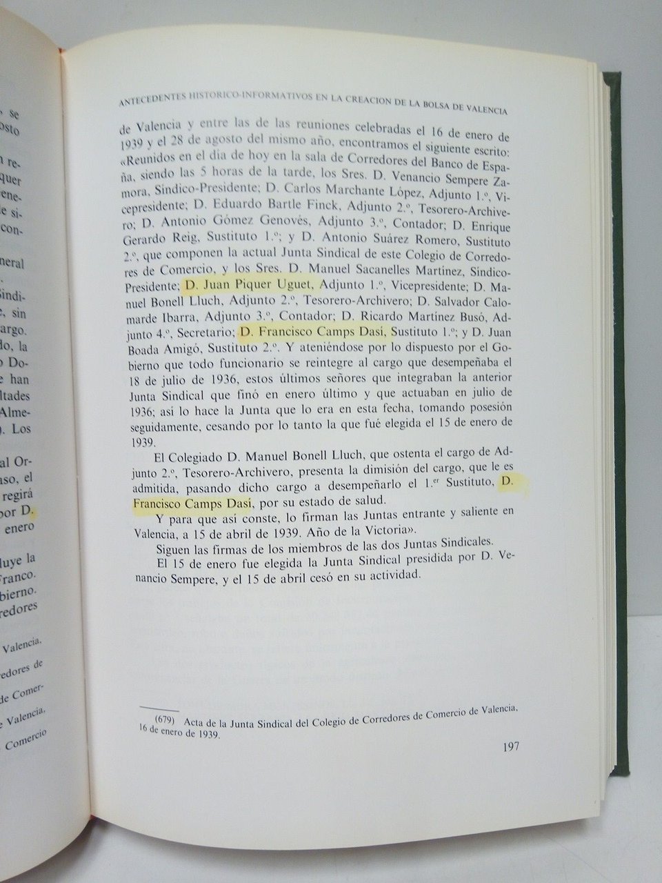 Valencia: Edita, Bolsa de Valencia (Imp. Federico Domenech), 1985.- 534 p. incluso al final profusión de facsímiles de prensa; 4º (25 x 18 cm); Cartoné Ed. verde, lomo dorado y plancha dorada en ambas tapas o planos.- RARO.* Tiene varios nombres señalados con suave rotulador amarillo en alguna línea de impresión. Por lo demás en excelente estado. HISTORIA DE LA ECONOMÍA ESPAÑOLA