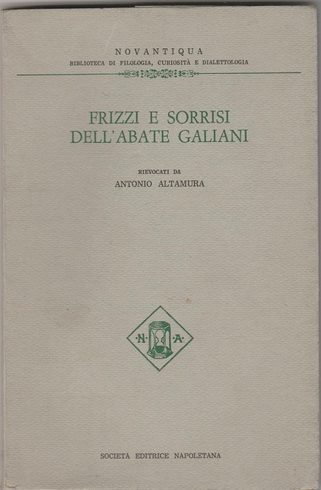 ANTONIO ALTAMURA FRIZZI E SORRISI DELL'ABATE GALIANI S EN 1977 L4922 COPERTINA SEMIRIGIDA EDITORIALE CON LIEVI SEGNI DEL TEMPO AI MARGINI E QUALCHE ALONE, ALL'ANTIPORTA DEDICA A PENNA, INTERNO IN BUONO STATO TAGLI LEGGERMENTE INGIALLITI QUARTA DI COPERTINA CON ALONI N. PAG. 103 CM. 21 X 13,7
