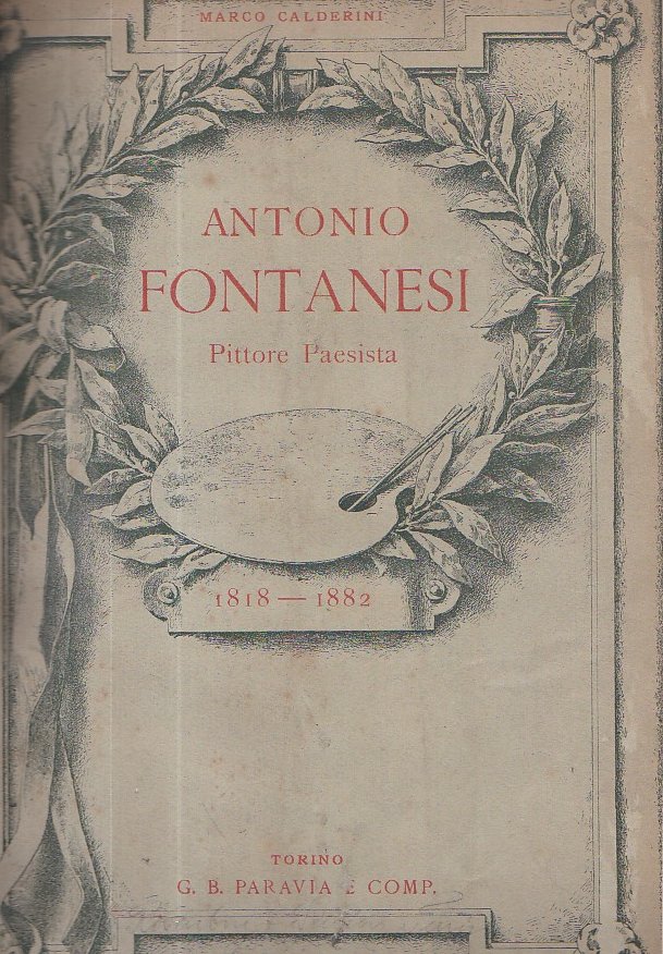 In-4° (338x243mm), pp. (6), 298, legatura mezza tela verde e angoli con titolo in oro su tassello al dorso e piatti marmorizzati. Sguardie pavonate. Brossura originale conservata con titolo in rosso entro serto vegetale con tavolozza pittorica, il tutto impresso in verde. Numerosissime illustrazioni in fotoincisione in b.n. n.t. Restauro a una cerniera. Ottimo stato. Prima edizione di questa referenziale monografia su Fontanesi, composta da un altro notevole pittore del tempo.