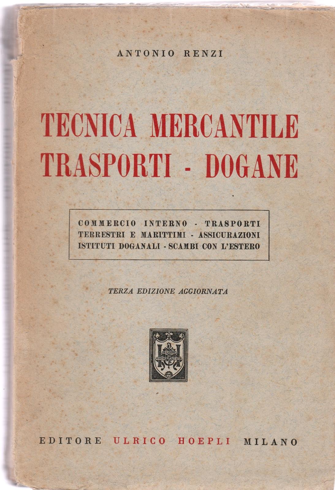 Antonio Renzi Tecnica Mercantile Trasporti Dogane Hoepli 1956 6089