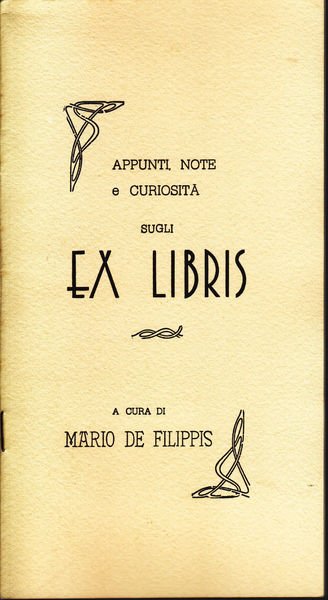 Singolare e bel fascicolo sugli ex libris, la loro storia e le curiosità redatto e prodotto da Mario de Filippis.
