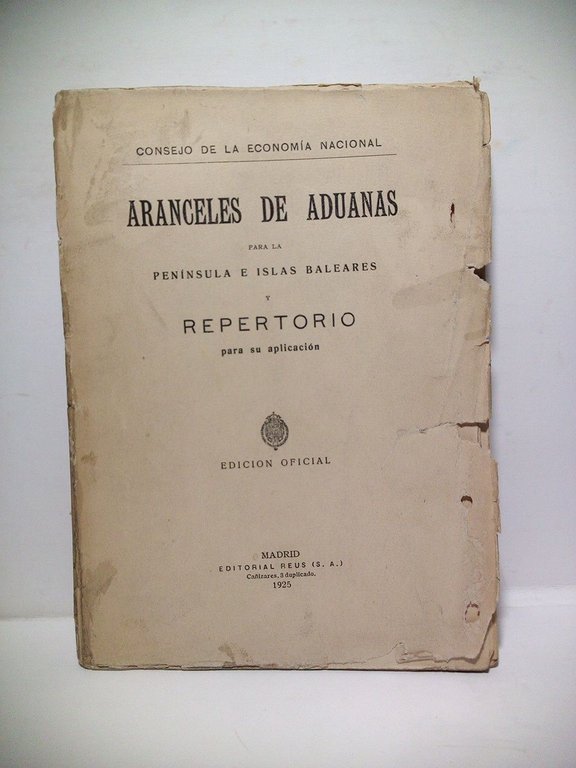 Aranceles de Aduanas para la Península e Islas Baleares, y repertorio para su aplicación. (EDICION OFICIAL)