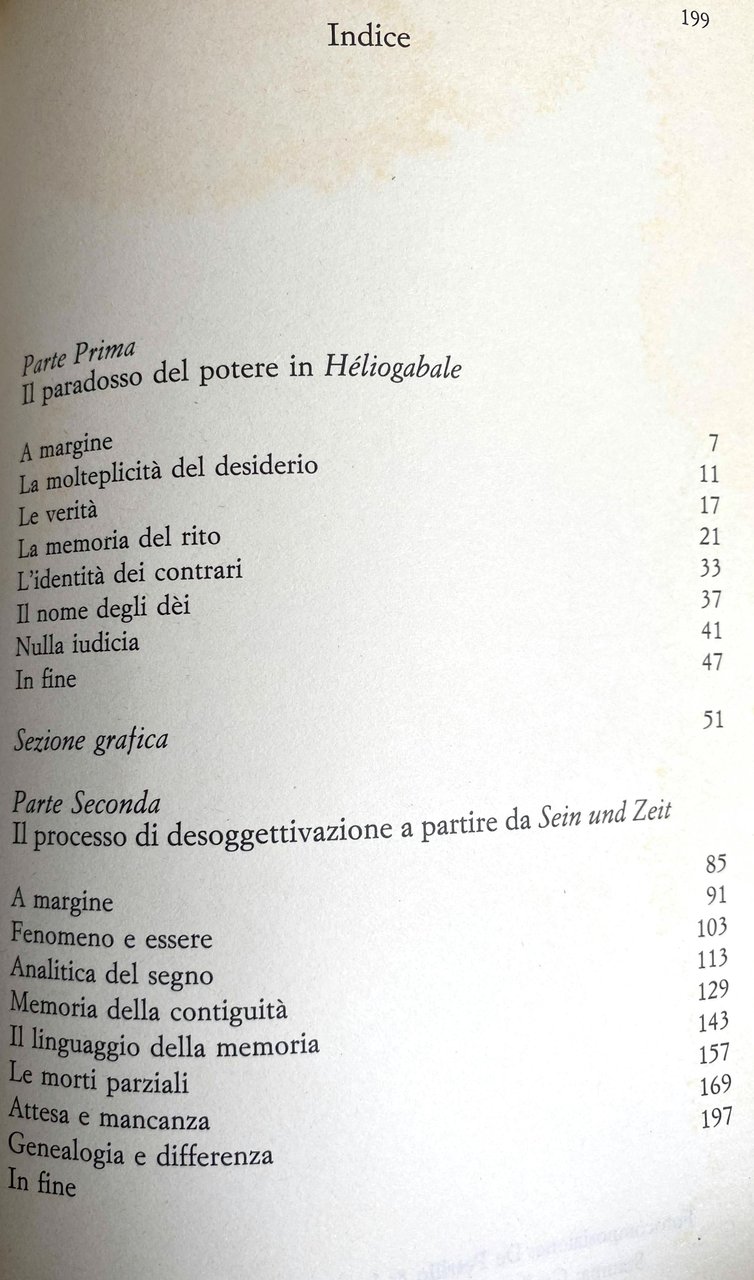 Soggetti: Filosofia del diritto Saggi Eliogabalo Paradosso Martin Heidegger Héliogabale ou L'anarchiste couronné Sein und Zeit Genealogia della legge Decadenza Rinascita Formalismo Uguaglianza Derrida Caos Fenomeno Memoria Concezione filosofica Libro dei Veda Libri rari fuori catalogo Bibliografia Riferimento Studi filosofici Collezionismo Critica Interpretazione Husserl Metafisica Rappresentazione grafica Semiotica Linguaggio Eraclito Analisi Anarchia Anomie Antonin Artaud Apofantico Asimmetria lineare Comprensione Concatenamenti Concetto Continuità Contrazione Coscienza Costituzione Dasein Decisione Deficit Deiezione Angoscia Desiderio Complesso Diagramma Direzioni rotative Discorso Distanza Elagabalus Entfernung Esistenzialismo Estatico Femminile Differenza Fenomeni Fenomenologia Formalizzazione Furcht Gannys Geneografica Domna Giulia Mamea Mesa Soemia Identità Identitario Angst Linea maschile Logica Lògos Metodo Mnemonica Mondo Morte Normativa Ontologica Pederasta Tempo Poter-essere Struttura Presenza Processo Relazione Ripetizione Rito Rituale Segno Senso Significato Simmetria Simultaneità Sistema Soggetto Spazio Storicità Transessuale Verità Xóyoq Norme Genere Philosophy of law Essays Paradox Genealogy Decadence Rebirth Formalism Equality Chaos Phenomenon Memory Philosophical conception Book of Vedas Rare books out of print Bibliography Reference Studies Collecting Criticism Interpretation Metaphysics Graphic representation Semiotics Language Heraclitus Analysis Anarchy Apofantic Linear asymmetry Understanding Chains Concept Continuity Contraction Consciousness Constitution Decision Dejection Anguish Desire Complex Diagram Rotating directions Discourse Distance Existentialism Ecstatic Feminine Difference Phenomenology Formalization Geneographic Julia Identity Identitary Female masculine line Logic Method Mnemonic World Death Normative Ontological Pederast Time Power-to-be Structure Presence Process Relation Repetition Rite Ritual Sign Sense Meaning Symmetry Simultaneity System Subject Space Historicity Transsexual Truth Norms Type
