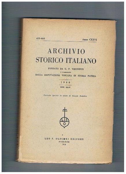Archivio storico italiano, trimestrale fondato da G. P. Viesseux. Anno 1968 disp. n° 3-4. fascicolo speciale in onore di Niccolò Rodolico in occasione del compimento dei 95 anni, scritti di Volpe, Cessi, Cognasso, Pampaloni, Neppi Modona, Curato, Valsecchi, Spadolini, ecc.