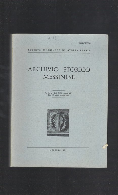 Archivio Storico Messinese III Serie- Vol. XXX-Anno 1979 Vol. 37° Dalla Fondazione