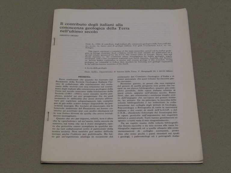 Ardito Desio. Il contributo degli italiani alla conoscenza geologica della Terra nell'ultimo secolo