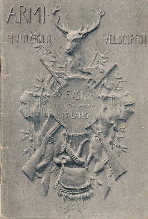 In-8 p. (mm. 205x138), brossura editoriale, pp. 96 con figure nel testo. Catalogo illustrato della storica azienda milanese, A. Fusi & C., attiva principalmente nella prima metà del '900, e specializzata nella vendita di armi, munizioni e biciclette (velocipedi). Nei suoi cataloghi vi era una vasta offerta di fucili, pistole, cartucce, accessori e velocipedi. Ben conservato..