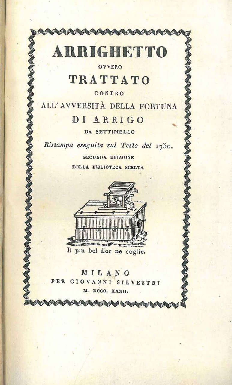Arrighetto ovvero trattato contro all'avversità della fortuna. Ristampa eseguita sul testo del 1730. Seconda edizione della biblioteca scelta
