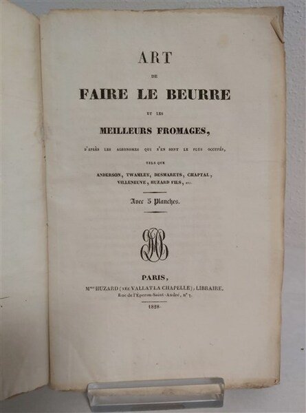 ART DE FAIRE LE BEURRE et les meilleurs Fromages, d’après les agronomes qui s’en sont le plus occupés tels que Anderson, Twamley, Desmarets, Chaptal, Villeneuve, Huzard fils, etc.