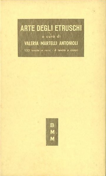 190 p., [4] c. di tav. : in gran parte ill. ; 18 x 11 cm. Biblioteca moderna Mondadori. Una sintetica ma completa monografia sulla genesi e lo sviluppo dell'arte etrusca. Legatura editoriale, coperta in cartone regido con impresso il titolo in bianco su riquadri dorati al piatto e al dorso, all'interno 132 tavole in b/n e 4 tavole a colori. Codice libreria 1342.