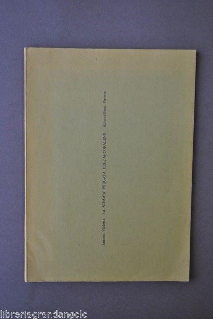 Vedere la descrizione dettagliata Antonio Violetta, La Scimmia Purgata dell'Arcobaleno" SchemaPrerss, Firenze 1979;24x17 cm; pp. nn. Brossura ed. Alcune ill. b.n. all'interno. Edizione numerata di 309 esemplari, questo è il N. 193. Condizioni di conservazione. Opuscolo in ottimo stato di conservazione con leggeri segni del tempo. Leggero viraggio di colore ai margini della brossura. Bella edizione d'arte. Per altri volumi e documenti su questo e altri argomenti visitate il nostro negozio "Libreria Grandangolo" CONDIZIONI DI VENDITA Spedizione Fino a 5 kg piego di libri raccomandato, oltre i 5 kg pacco postale. Si ricorda che l'imballo viene eseguito con la massima cura. La merce viene spedita a pagamento avvenuto e viaggia a rischio e pericolo dell'acquirente. Per maggiori informazioni vedi la pagina SPEDIZIONI del nostro negozio. Ritiro diretto Siamo disponibili per il ritiro diretto a Modena e a Milano. Per gli indirizzi delle sedi vedi la pagina DOVE SIAMO del nostro negozio. Acquisti multipli Se si acquistano più libri, la spedizione si paga una sola volta, purché si rispettino gli scaglioni di peso. Estero / Foreign For international shipment, please contact us. Metodo di pagamento Pay Pal, bonifico bancario, versamento postale (cc/p, vaglia o altro). La spedizione avverrà entro i primi 4 giorni lavorativi dopo la conferma di avvenuto pagamento. Si emette ricevuta fiscale e a richiesta fattura. Il pagamento deve essere effettuato entro 7 giorni lavorativi dalla data di acquisto, trascorsi i quali l'oggetto sarà rimesso in vendita. Feedback Viene rilasciato dall'acquirente dopo il ricevimento di quanto acquistato. Data la sua importanza, vi invitiamo a leggere il breve testo della pagina FEEDBACK del nostro negozio. Pertanto, in caso di qualsiasi problema, non esitate a contattarci. Diritto di recesso L'acquirente ha il diritto di restituire l'oggetto entro 14 giorni ed essere rimborsato, escluse le spese di porto e imballo. L'oggetto deve essere restituito, dopo previa comunicazione, imballato e nelle medesime condizioni di come era all'origine. Creato da Turbo Lister Strumento gratuito per mettere in vendita i tuoi oggetti. Metti in vendita i tuoi oggetti in modo facile e veloce e gestisci le inserzioni in corso. "