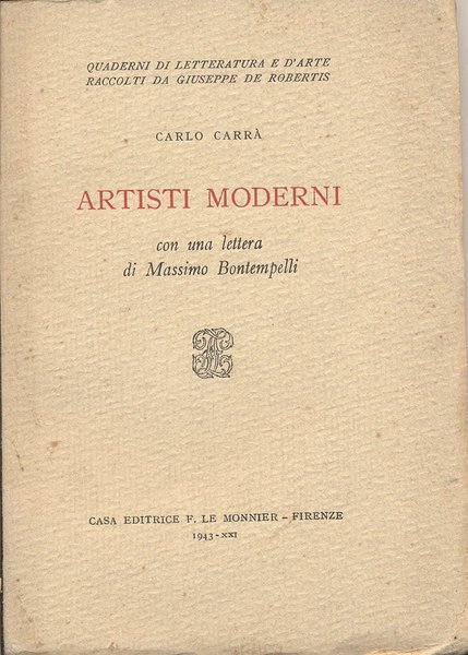ARTISTI MODERNI. - Con una lettera di Massimo Bontempelli.