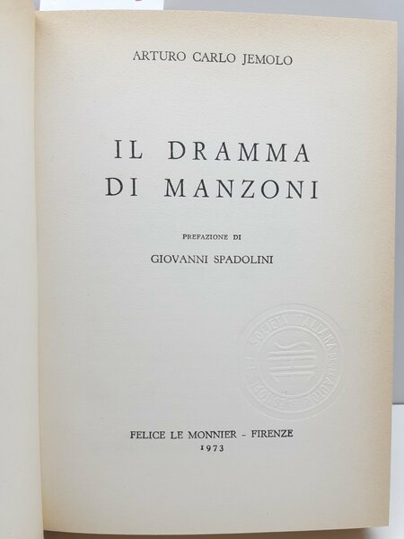 Arturo Carlo Jemolo Il dramma di Manzoni pref. di Giovanni Spadolini Le Monnier 1973, 2∞ ed. copia n. 1135, Rotary Milano Centro 1923 1973 Natale