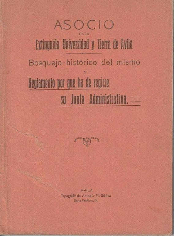 ASOCIO DE LA EXTINGUIDA UNIVERSIDAD Y TIERRA DE AVILA. BOSQUEJO HISTORICO DEL MISMO Y REGLAMENTO POR QUE HA DE REGIRSE SU JUNTA ADMINISTRATIVA.