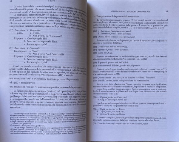 ELISABETTA FAVA Atti linguistici e struttura grammaticale: interpretazione semantica e distribuzione sintattica di indicatori di forza parentetici