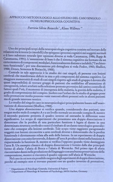 PATRIZIA SILVIA BISIACCHI, KLAUS WILLMES Approccio metodologico allo studio del caso singolo in neuropsicologia cognitiva