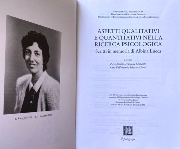 ASPETTI QUALITATIVI E QUANTITATIVI NELLA RICERCA PSICOLOGICA. SCRITTI IN MEMORIA DI ALBINA LUCCA. A CURA DI PIERO BOSCOLO, FRANCA CRISTANTE, ANNA DELLANTONIO, SALVATORE SORESI