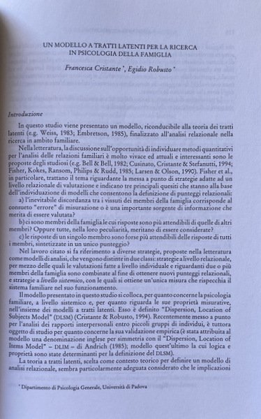 FRANCESCA CRISTANTE, EGIDIO ROBUSTO Un modello a tratti latenti per la ricerca in psicologia della famiglia
