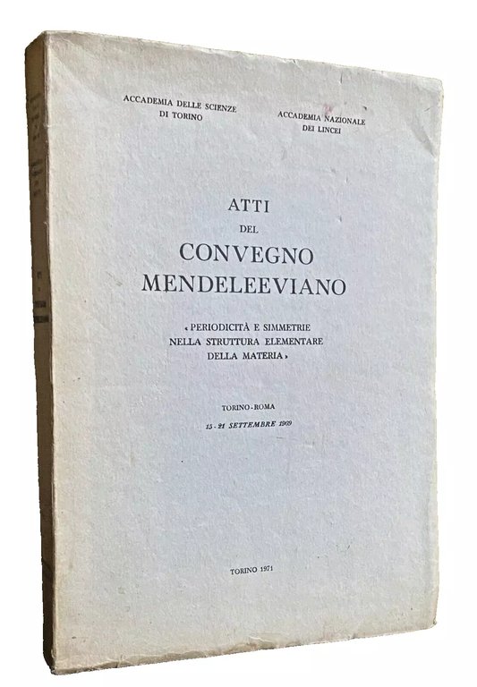 ATTI DEL CONVEGNO MENDELEEVIANO. PERIODICITÀ E SIMMETRIE NELLA STRUTTURA ELEMENTARE DELLA MATERIA. TORINO-ROMA 15-21 SETTEMBRE 1969. TRANSACTIONS OF THE MENDELEEV CONFERENCE. PERIODICITY AND SYMMETRY IN ELEMENTARY STRUCTURE OF MATTER. TURIN-ROME, 15-21 SEPTEMBER 1969