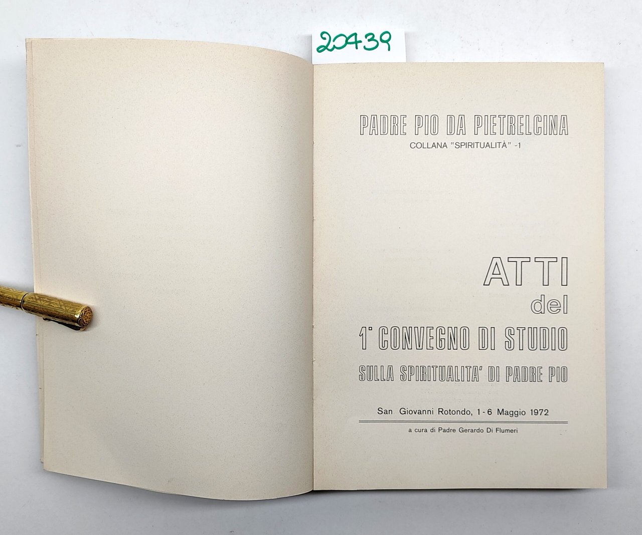 Atti del primo convegno di studio sulla spiritualità di Padre Pio San Giovanni Rotondo 16 maggio 1972