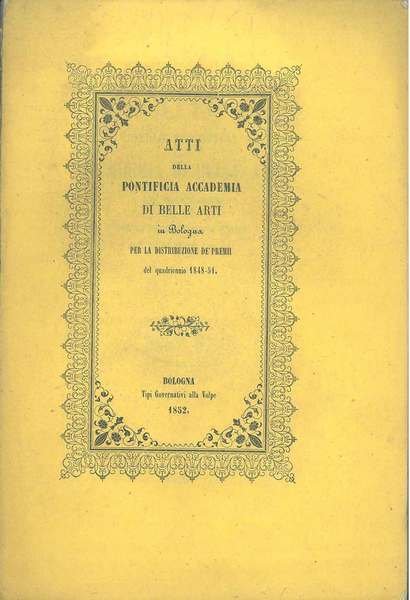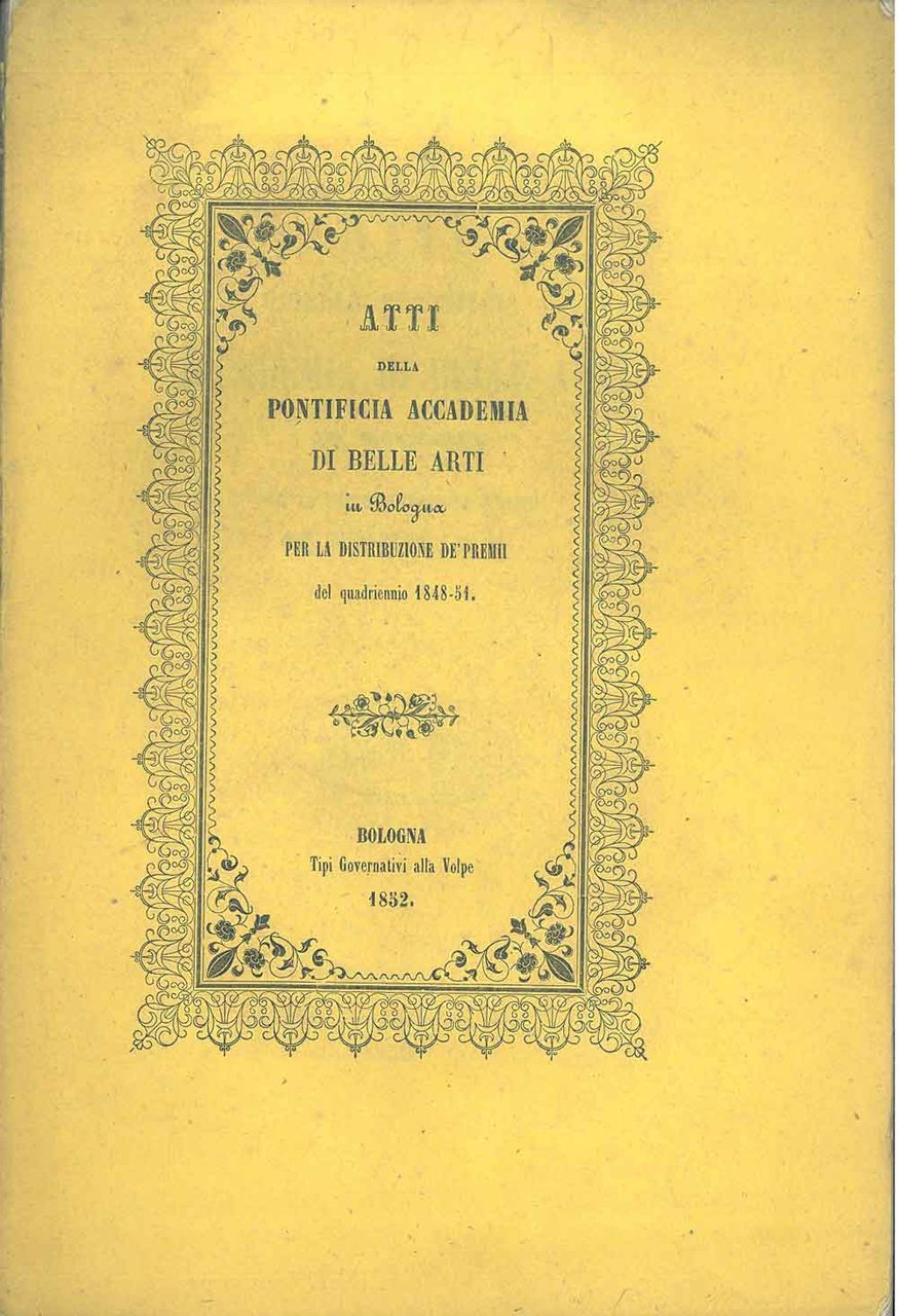 Atti della Pontificia Accademia di Belle Arti in Bologna per la distribuzione de' premii del quadriennio 1848-51