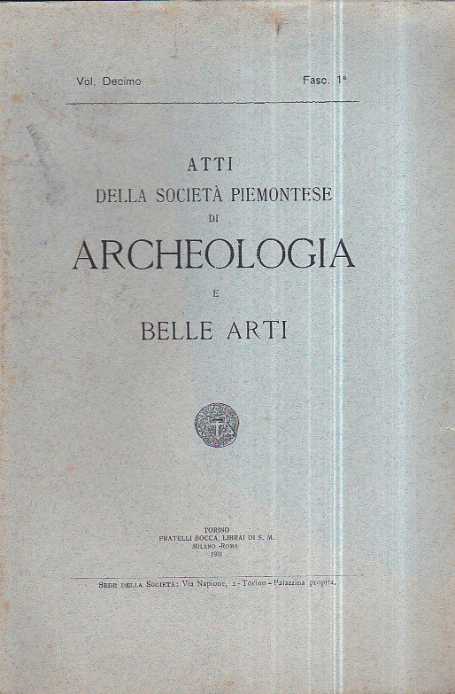 Atti della Società Piemontese di Archeologia e Belle Arti. Vol. decimo. Fasc. 1° | Libros antiguos y modernos |