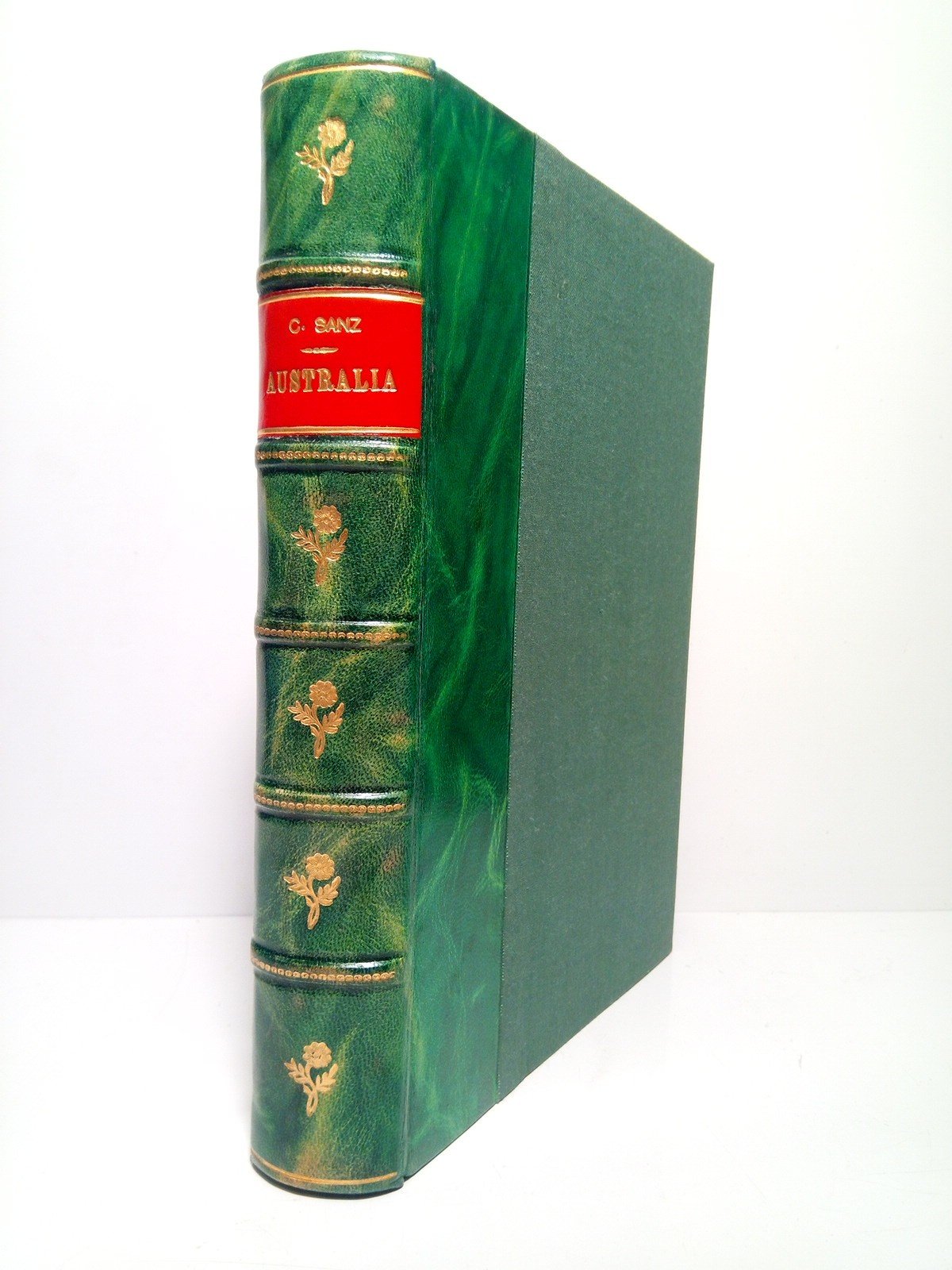 Madrid: Ministerio de Asuntos Exteriores, 1973; Imp. Aguirre, 1967; Imp. Aguirre, 1975 [respectivamente para cada obra].- Son tres libros independientes encuadernados en un mismo volumen (266 p., [1 h.]; 96 p.; 133 p.): Profusión de mapas en el segundo libro, además tras el primero se han encuadernado con el conjunto 4 folios plegados facsímiles de una carta del Dr. Boris Osés (Sprachenschule der Stadt München) dirigida al Ministerio de Asuntos Exteriores de España elogiando las investigaciones de D. Carlos Sanz; 4º (24,4 x 17,5 cm); Algunos textos en inglés en la primera obra; Encuadernación en Media Piel valenciana en tonos verdosos, lomo dorado, tejuelo, corte superior tintado en color granate, conservando todos los libros sus cubiertas originales.- (Publicaciones de la Real Sociedad Geográfica. Serie B. N.º 471 y 523 [la segunda y tercera obra]).* Excelente estado. Estos tres libros forman un conjunto importantísimo para el estudio y aclaración de los conocimientos geográficos de la época, señalando a QUIROS como el descubridor de Australia. El primero de los libros, de 266 p., contiene una serie de FACSIMILES de los Memoriales que a continuación relaciono. DESCUBRIMIENTO DE AUSTRALIA: Memorial N.º 8. Texto original impreso en Madrid ca. 1609, y presentado al Rey Felipe III por el Capitán Pedro Fernández de Quirós + otro texto anterior al Memorial N.º 8, que excepcionalmente se reproduce / Relación de un memorial. sobre el descubrimiento de la cuarta parte del mundo, Australia incógnita. Pamplona, Imp. Carlos de Labayen, 1610 / [en italiano] Relatione d'un Memoriale. [lo mismo que el anterior] en Milano, 1611 / [en alemán] La misma relación. en Augspurg, bey Chrysostomo Debersshofer, 1611 / [en holandés] La misma relación. en Amsterdam, Hessel Guerritt'z, 1612 / [en latín] La misma relación.por Henrico Hudson Anglo, Amsterdam, 1612 / [en alemán] lo mismo. (De Bry. Pequeños Viajes. En Alemán) Parte X., Año 1613 / [en latín] sobre lo mismo (De Bry. Pequeños Viajes) Pars X., Francofurti, 1613 / [en francés] La misma relación. A Paris, 1617 / [en inglés] La misma relación. London, Printed for Iohn Hodgetts, 1617 / [en inglés Una de las más completas colecciones de viajes que existen el lengua inglesa. Haklvytus Posthumus or Purchas his Pilgrimes. Containing a History of the World in Sea voyage & lande Trawells, by Englismen & others. By Samuel Purchas B. D. London, 1625] En el volumen 4º, páginas 1422-1432, aparecen dos memoriales de Quirós. El Memorial número 8 traducido al ingles de el original impreso en Sevilla, el año 1610, y el estampado en Barcelona en 1609, considerablemente aumentado el texto, que se publica en español / [en holandés] La misma relación. en t'Amstelream. 1643 / Y finaliza con un Indice cronológico de las ediciones publicadas del Memorial N.º 8, desde su aparición en 1609. Recalco que como se indica en la ficha, el libro incluye una rara e interesante carta facsímil mecanográfica del Dr. Boris Osés. HISTORIA DEL SIGLO DE ORO ESPAÑOL