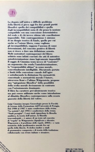 Soggetti: Filosofia moderna e contemporanea, Libertà del volere, Volontà, Autodeterminazione, Scelta, Etica, Saggi, Kant, Dialettica, Ontologia, Causalismo, Akrasia, Determinismo, Dovere, Responsabilità, Normatività, Regole, Prescrizione, Dibattiti filosofici, Idee ingannevoli, Gnoseologia, Bibliografia, Wittgenstein, Libri fuori catalogo, Saggi, Modern and contemporary philosophy, Freedom of the will, Will, Self-determination, Choice, Ethics, Essays, Dialectics, Ontology, Causalism, Determinism, Duty, Responsibility, Normativity, Rules, Prescription, Philosophical debates, Misleading ideas, Gnoseology, Bibliography, Books out of print, Essays