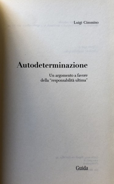 AUTODETERMINAZIONE. UN ARGOMENTO A FAVORE DELLA RESPONSABILITÀ ULTIMA | Libros antiguos y modernos | Luigi Cimmino