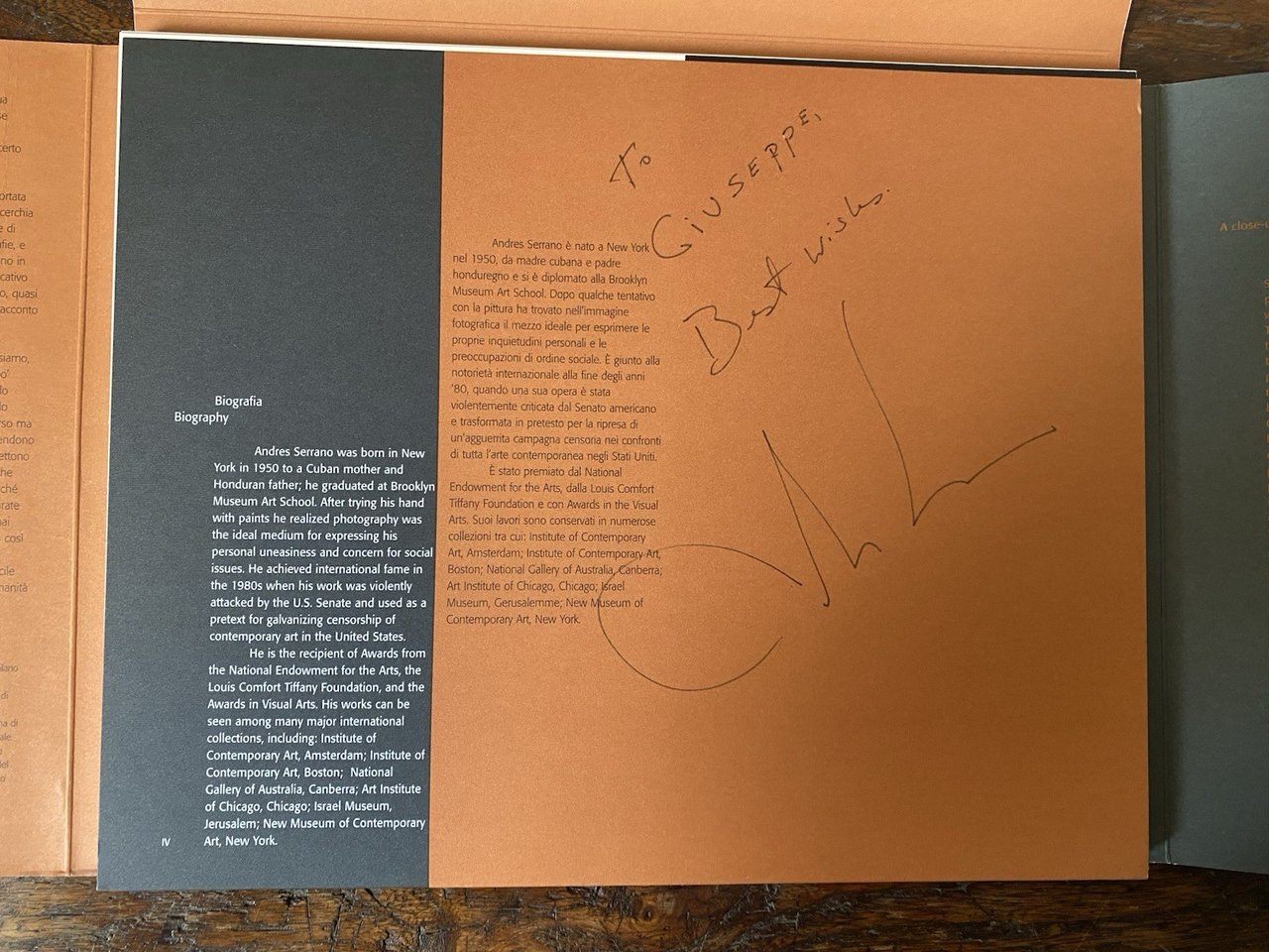 Dedica di Andres Serrano In 8° fotografie sciolte in cartella editoriale I° edizione Ottimo stato