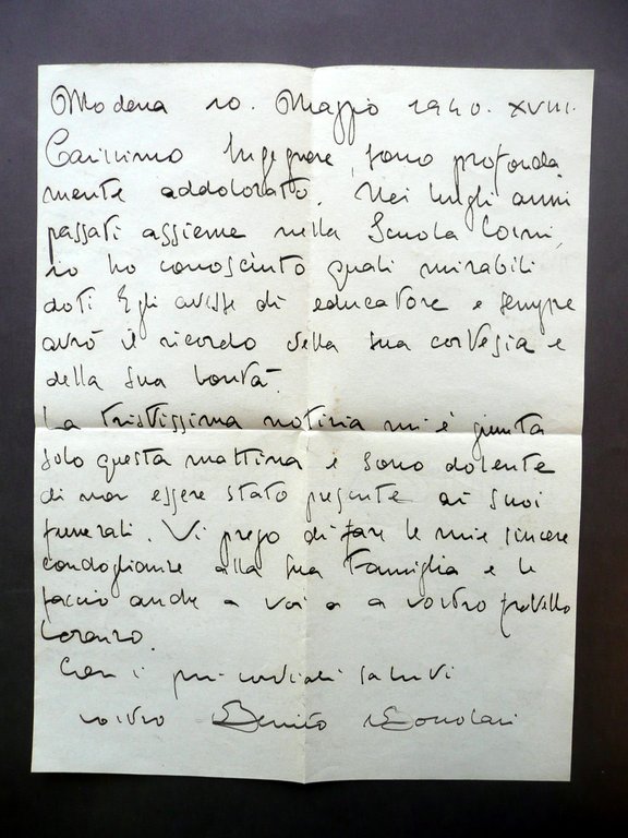 Autografo Benito Boccolari Lettera 110/5/940 Condoglianze Xilografia Modena Arte