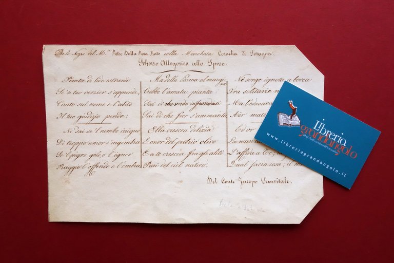 Autografo Conte Jacopo Sanvitale Scherzo Allegorico Nozze Dalla Rosa Soragna