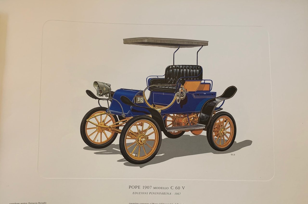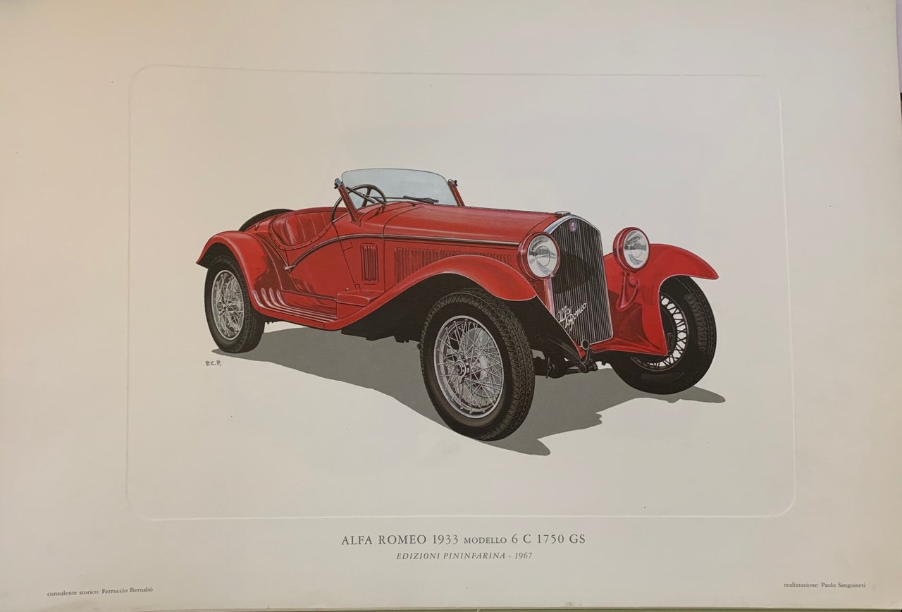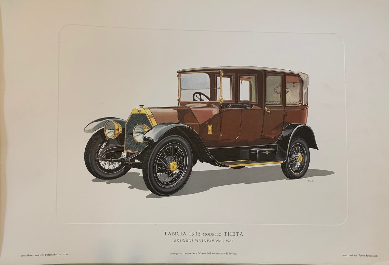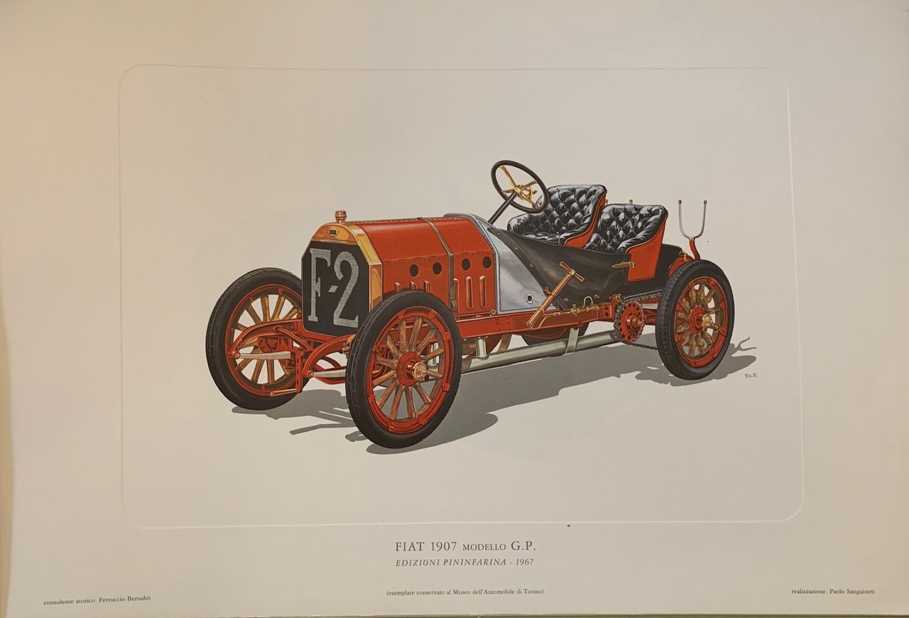 >Prestigiosa edizione strenna in tiratura limitata. Splendide tavole a colori, cm 49,5x34, realizzate da Paolo Sanguineti. Riproducono 12 modelli di auto antiche conservate al Museo dell'Automobile di Torino. Su cartoncino, con cornice a secco, belle e decorative, perfette. € 70 caduna