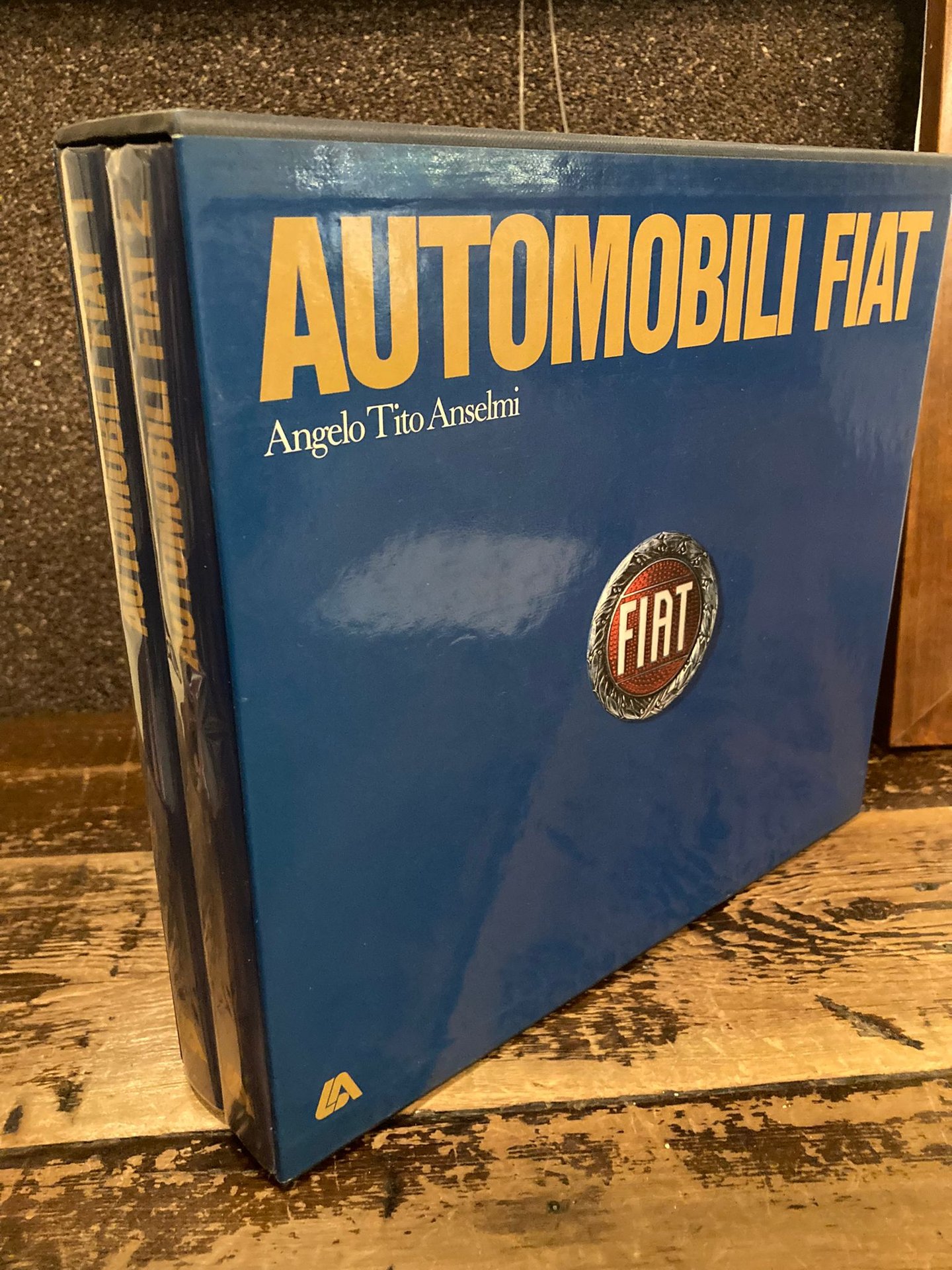 Due volumi in-4° rettangolare (28x25 cm), pp. 263, (1); 525 (3), legatura editoriale tutta tela rigida blu con titoli al dorso e logo della FIAT impressi ai piatti anteriori, ripetuti alla sovracoperta illustrata fotograficamente a colori con alette paratestuali, sguardie figurate con il logo della FIAT, custodia in cartone rigido figurato. Interamente illustrato con numerosissime illustrazioni fotografiche b/n nel testo e fuori di essi. Perfetto stato. Non comune edizione originale di questo ricercato catalogo ragionato delle produzioni automobilistiche Fiat dalle origini agli Anni Cinquanta, curato da Angelo Tito Anselmi, ideatore del Registro Fiat Italiano e consulente del Museo dell'Automobile di Torino. Qui per la prima volta vengono schedati e documentati, anche iconograficamente, con certezza e dovizia di particolari alcuni rari modelli da corsa meno noti.