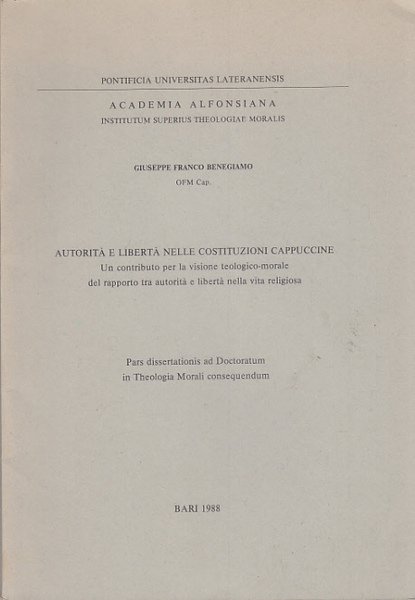 Autorità E Libertà Nelle Costituzioni Cappuccine Un Contributo Per La Visione Teologico-Morale Del Apporto Tra Autorità E Libertà Nella Vita Religiosa | Libros antiguos y modernos | Giuseppe Franco Benegiamo
