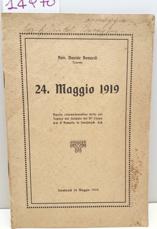 Avvocato Davide Bonardi 24 Maggio 1919 Innsbruck